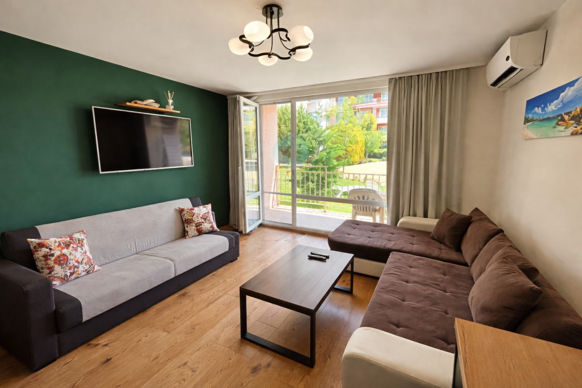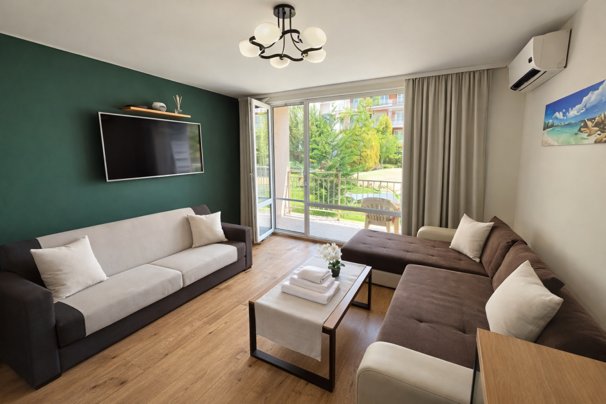 Przytulne i funkcjonalne studio w popularnym kompleksie Nessebar Fort Club to idealna propozycja dla osób szukających komfortowego wypoczynku w spokojnej części Słonecznego Brzegu.